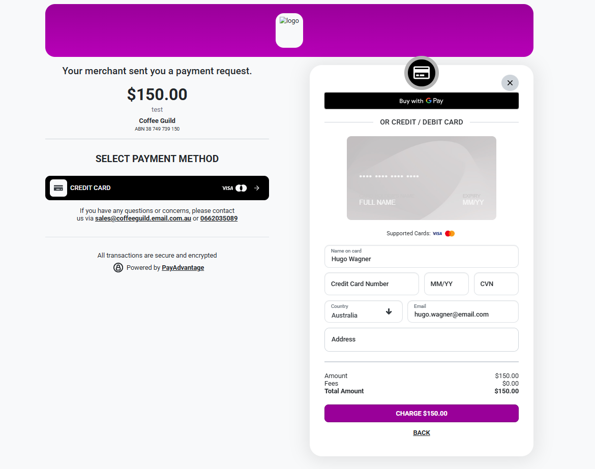 When they select Charge, the payment will be processed in real time, and the successful transaction will be instantly visible on screen.