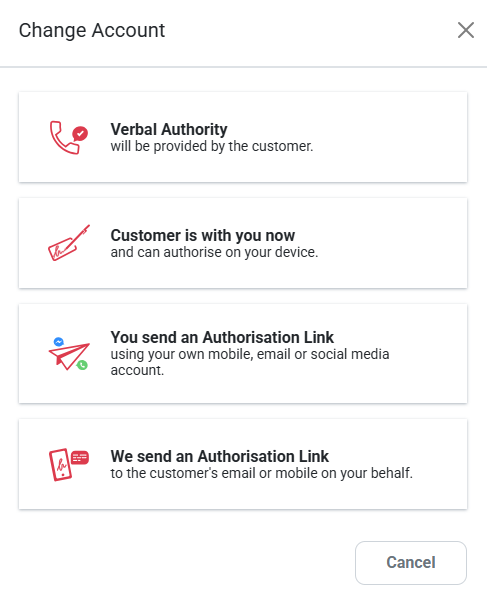 Please note: A Change of Account link will be automatically sent to customers if an error occurs on their account or card (for example, payment stopped, lost or stolen card, or expired card).