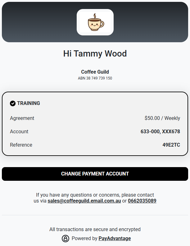 The customer will be required to review and sign to authorise the change. Once authorised, the new payment details will automatically update in the system.