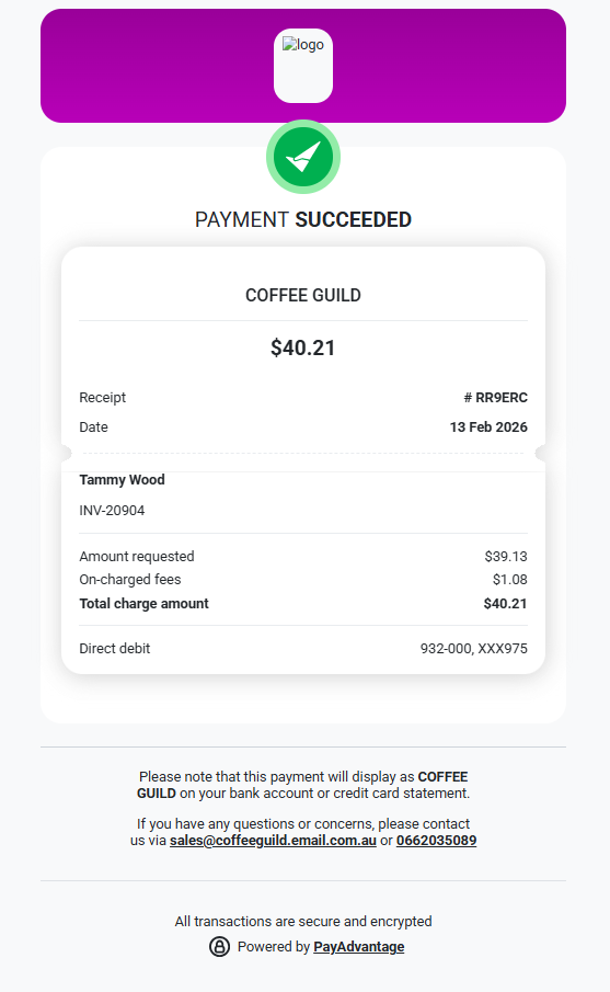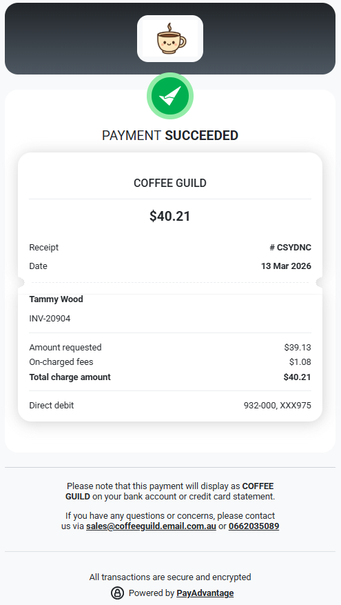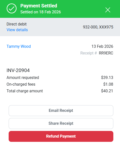 Once a customers payment has been processed, you can send them a receipt via email or by sharing a secure link.