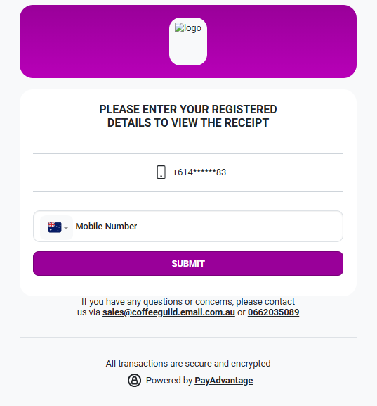 To view the receipt, the customer will be required to enter their registered details (their mobile number).