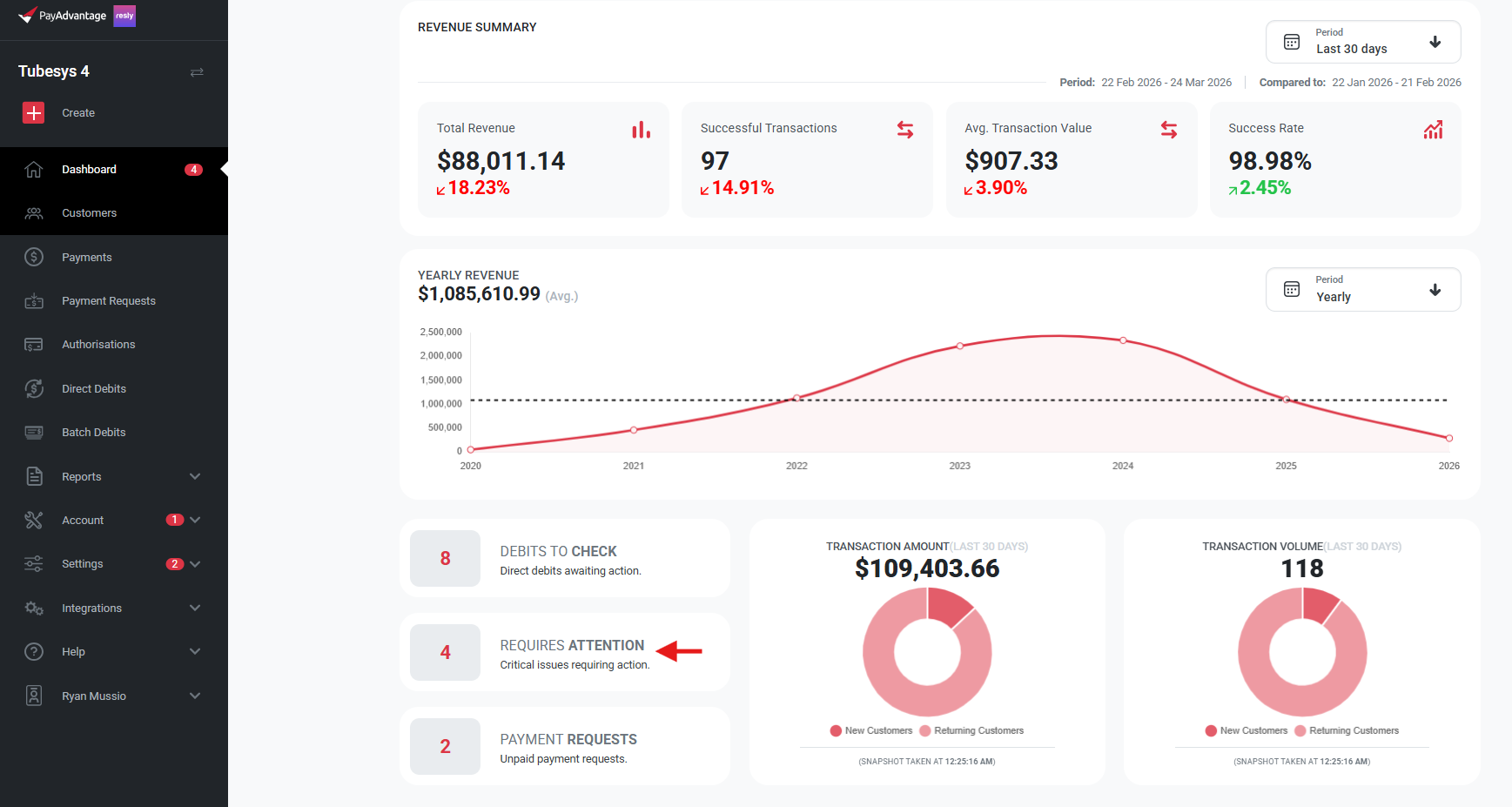 On the main dashboard, locate the “Requires Attention” section.