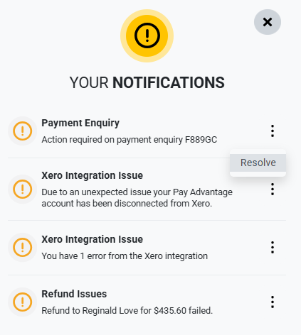 Click on the three dots next to the Payment Enquiry and select Resolve.
