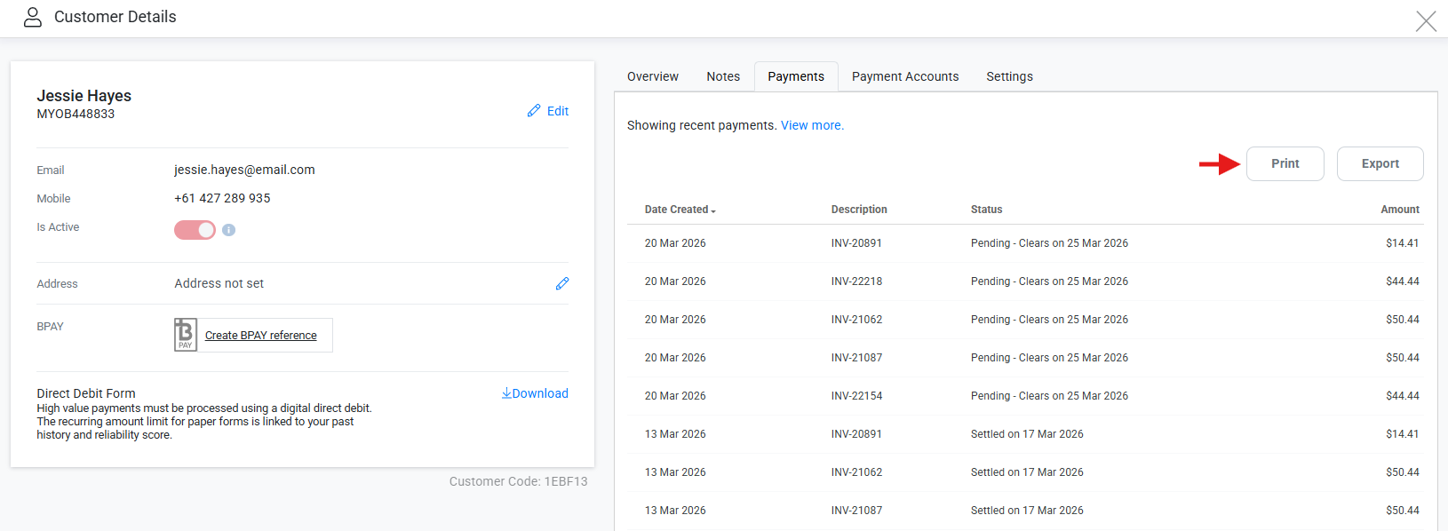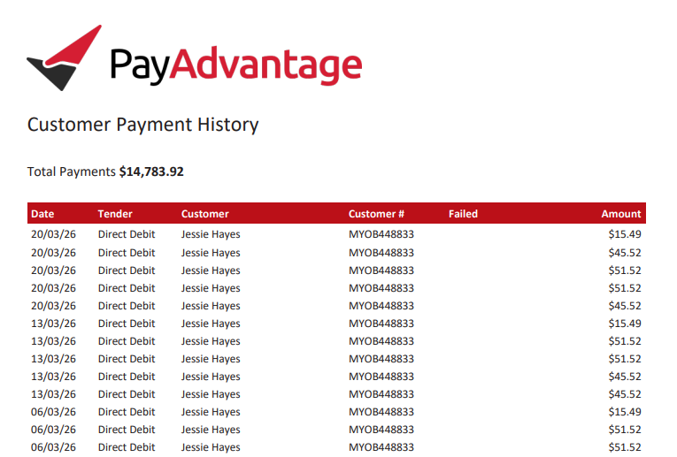 Once the report has been generated, you can download and send this to the customer directly. This allows you to easily provide your customer with a full record of their payments in your preferred format.