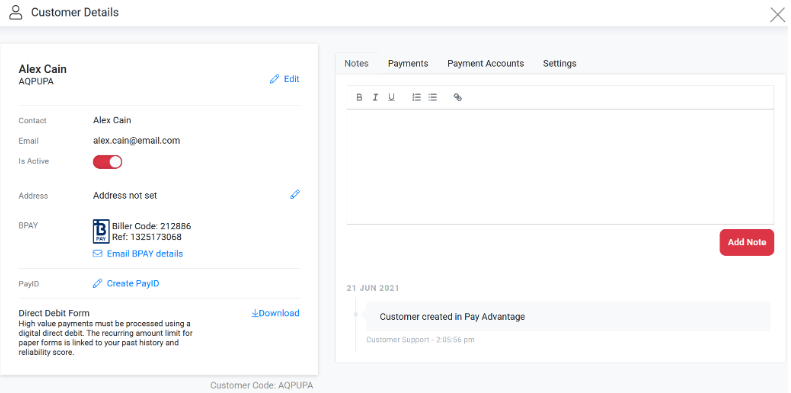 When a customer is created, their PayID is automatically generated using a combination of their customer reference number (entered by the merchant) and their unique customer number, ensuring each PayID is unique to that customer.